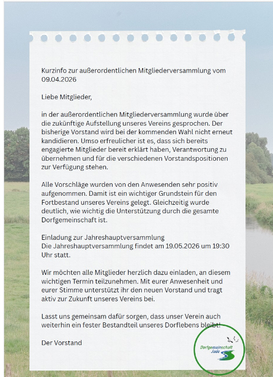 einfach für alle Bürger des Ortes Jade da und offen für eure Anregungen und euer Mitwirken.